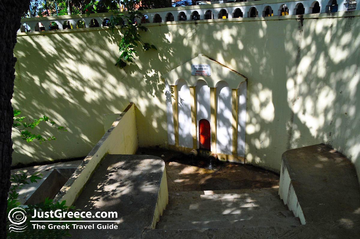 Karavomylos. Karavomylos is a small fishing village in the east of the island of Kefalonia. Karavomylos is located two kilometres west of Sami, there live about 350 inhabitants in the village. On the pebble beach, there is a traditional water mill and just behind it, the Lake of Karavomylos. According to scientists, the Lake of Karavomylos has an underground connection with Katavothres at Argostoli and the Melissani lake.