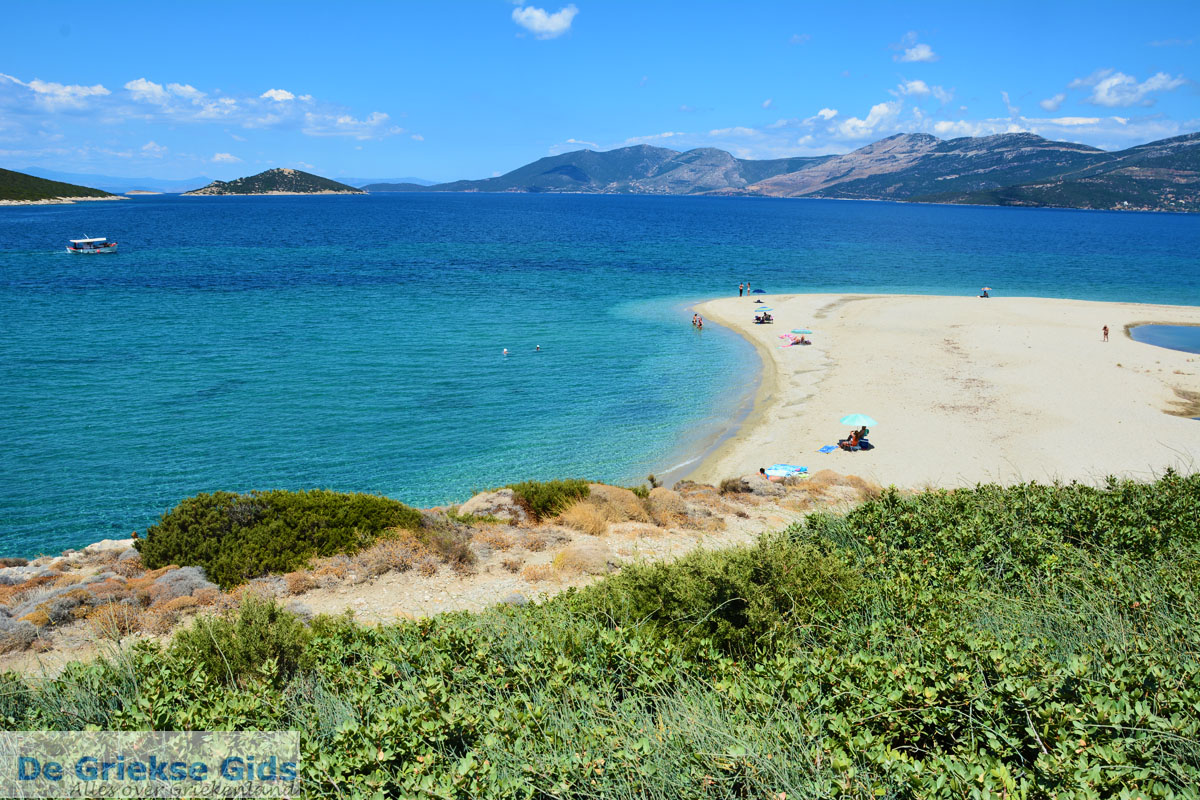 North of Marmari you can find the beaches Fygias, Kokkini and Kavos. They are all beautiful sandy beaches in the middle of a green environment. Just behind the beach of Kokkini are lots of villas of wealthy Greeks who built their second home here. South of Marmari we find the beaches Megali Ammos (Golden Beach) and Zastani. Megali Ammos is a unique sandy beach, it is actually a sand spit which moves regularly.