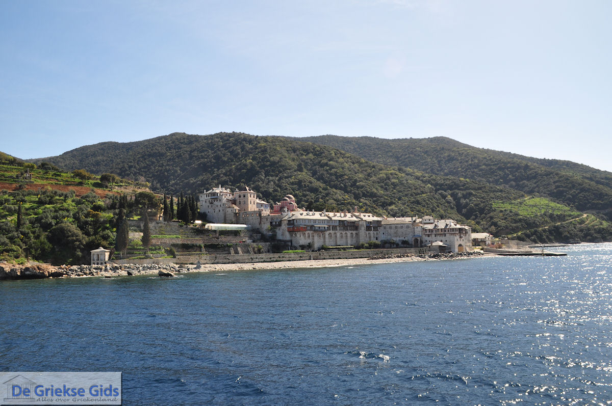 Pyrgadikia. Pyrgadikia is a fishing village located in the bay of Agion Oros (Mount Athos) in Halkidiki. It lies in a bay, approximately 35 kilometers (22 mi) from the capital of Halkidiki, Polygyros. About 300 inhabitants live in Pyrgadikia, and most are fishermen or people engaged in tourism.