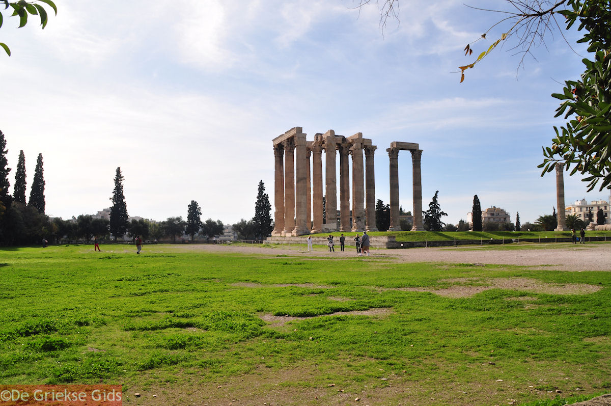 The Temple of Olympian Zeus. The Arch of Hadrian is located northwest of the Acropolis, near Plaka on Amalias Road. The Arch of Hadrian stands on the same site as the temple of Olympian Zeus. The Olympian Zeus temple was the largest temple of ancient Greece during the Hellenistic and Roman period. The Greek writier Pafsanias wrote that the temple of Olympian Zeus was built by Deucalion (one of the mythical ancestors of the Greeks). Then around 550 BC. Peisistratus came to power through a coup and became a tyrant. He wanted to completely destroy this temple to make it bigger and more impressive. After his death (527 BC.) his sons Hippias and Hipparchus came to power, but the first was exiled and the second was killed in 514 BC. Therefore, the work at the temple was halted for a very long time, probably because the Greeks thought it was a shame at this time to build such large temples.