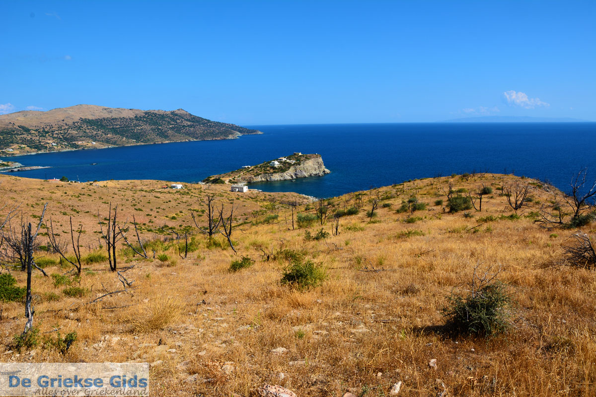 Southeast of Marmari is located the town Karystos. On top of a hill near the town, the red castle is situated (Castello Rosso). Next to the marina and fishing port of Karystos there is the small fortress of Bourtzi. Near the port and the main town square are many nice cafés and a little further is the beautiful, wide sandy beach. Speaking of beaches; two very beautiful beaches are on the Aegean Sea, on the east coast. These are the beaches of Agios Dimitrios, at the end of the gorge of Agios Dimitrios, and the beach at Giannitsi.