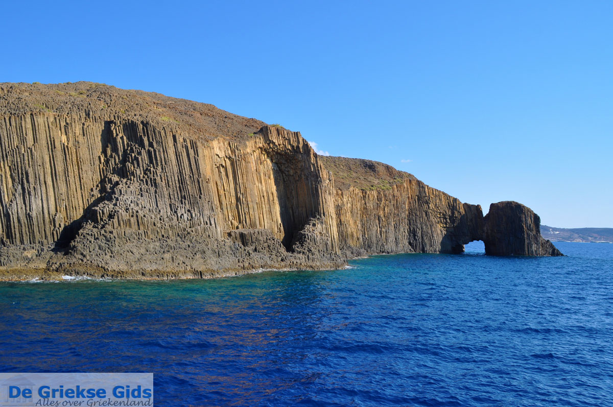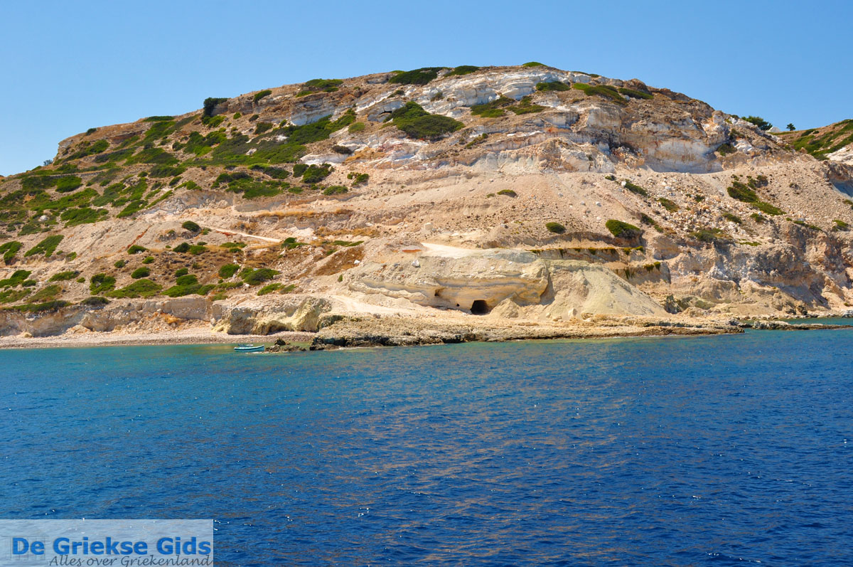 Milos. Milos, also called Melos, a Cyclades island in the southwest of the Aegean Sea. It is the fifth largest island of the archipelago (151 km2/58mi2). It has a coast length of 120 kilometers (75 mi). Milos is best known for the statue of Aphrodite (Venus) that was found here and can be admired in the Louvre in Paris. Though Milos is more than the home of "Venus de Milo." Milos is a very special island due to the diverse geological nature. The island is of volcanic origin, which is clear to see during a visit to the island. Either by car, bus or boat you will discover amazing, impressive natural phenomena.